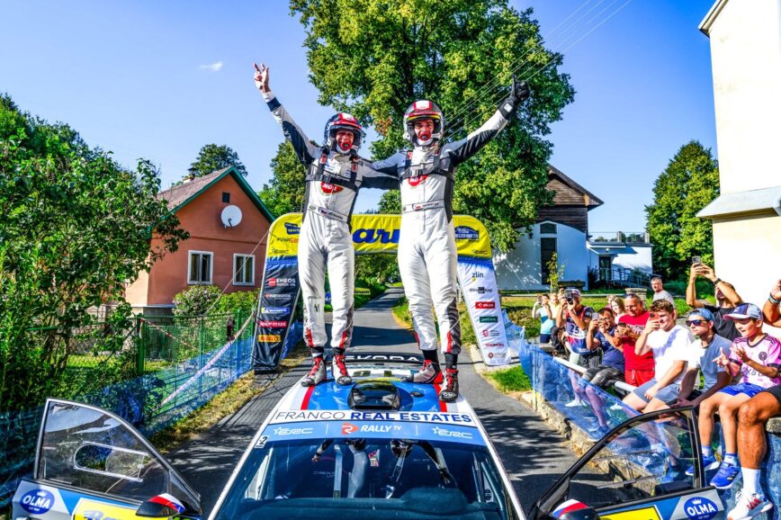 Co-driver Jiří Hovorka celebrates back-to-back Zlín victories 👏#FIAERC #BarumRally pic.twitter.com/qiayDlnn0j