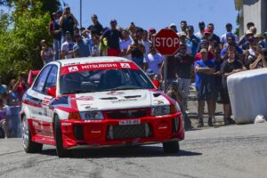 Madeira, em Mitsubishi Lancer Evo3. Madeira rodou no segundo posto ao longo do primeiro dia, mas perderia a posição para Hugo Lopes e Magda Oliveira (Citroën Saxo Kit Car) na derradeira classificativa de sexta-feira, a Super Especial Braga, devido a um problema mecânico.