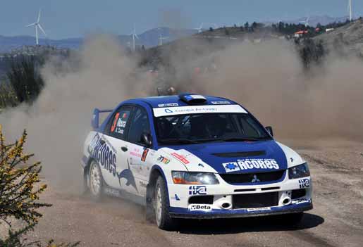 O piloto do Mitsubishi Lancer Evo IX lidera a prova, embora com apenas 5,7 segundos de avanço sobre o segundo, que é o espanhol Vitor Senra (Peugeot 206 S1600).