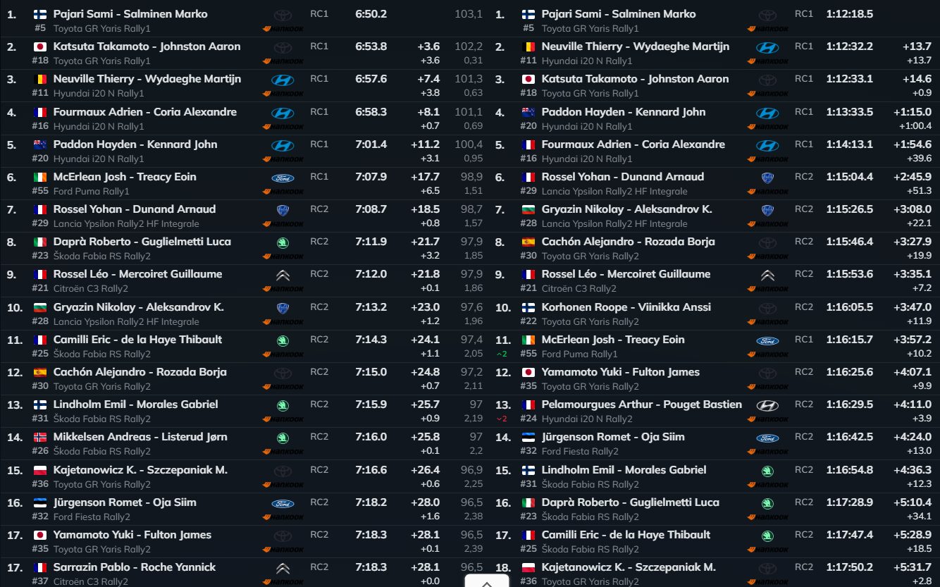 Com a queda de Evans e num dia em que vários candidatos enfrentaram problemas, Pajari foi quem melhor capitalizou. O finlandês não foi o mais veloz da manhã de forma consistente, mas manteve-se estável quando outros vacilaram, assumiu a liderança e assinou o melhor tempo na SS4.