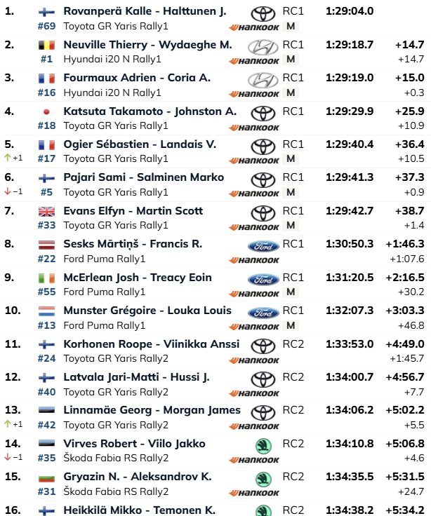 A competitividade manteve-se acesa noutras frentes. Sébastien Ogier e Vincent Landais, a bordo de outro Toyota GR Yaris Rally1, conseguiram ganhar uma posição, ultrapassando Sami Pajari e Marko Salminen, também em Toyota GR Yaris Rally1. Por sua vez, Elfyn Evans e Scott Martin, igualmente com um Toyota GR Yaris Rally1, registaram o segundo melhor tempo da especial, terminando a manhã a apenas 1,4 segundos do quinto posto e mantendo-se firmemente na luta pelo quarto lugar, demonstrando que a batalha pelas posições intermédias está longe de estar decidida.