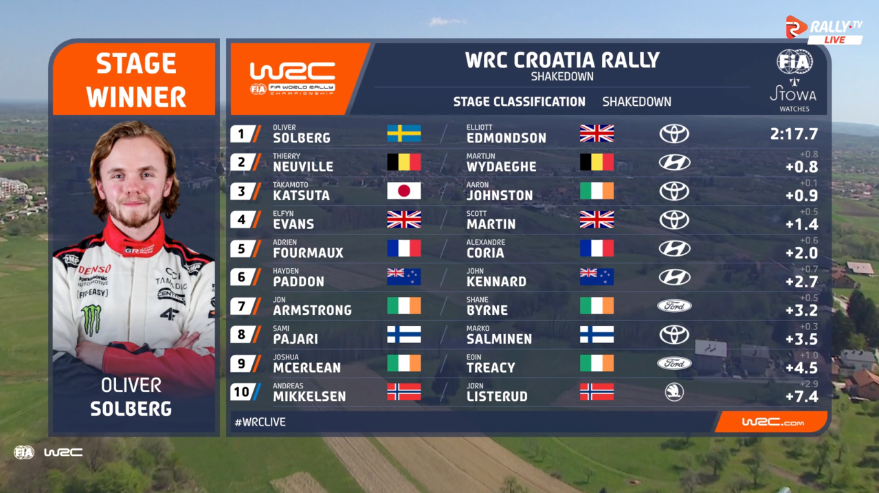 Oliver Solberg assinou o tempo mais rápido no shakedown do Rali da Croácia e registo o primeiro ‘avanço’ da Toyota face à concorrência, sendo que, como sempre, o shakedown serve para nos ‘ensinar’, muito pouco ou nada, mas simplesmente para as equipas verem se está tudo bem com os carros e os adeptos poderem vê-los na estrada.
