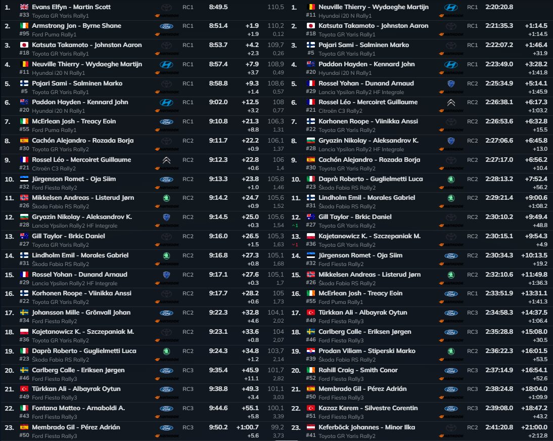 Os problemas com pneus atingiram vários pilotos em simultâneo. Jon Armstrong parou para trocar uma roda, Hayden Paddon sofreu um furo dianteiro esquerdo e Katsuta enfrentou a mesma contrariedade. O golpe mais pesado, porém, foi o de Pajari, forçado a parar com o Toyota numa altura crítica da tarde. A perda de tempo foi decisiva para o desenrolar da prova e alterou por completo a hierarquia na frente.