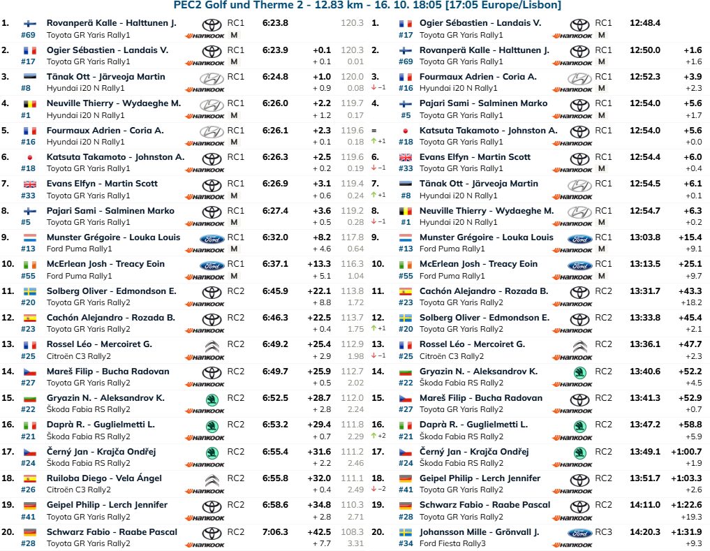 Após Ogier ter triunfado no troço de abertura e Rovanperä ter empatado com Adrien Fourmaux, o piloto finlandês destacou-se na segunda especial, superando Ogier por um décimo de segundo. Esta performance permitiu a Rovanperä isolar-se no segundo lugar da classificação geral, a 1.6 segundos do seu colega de equipa francês.