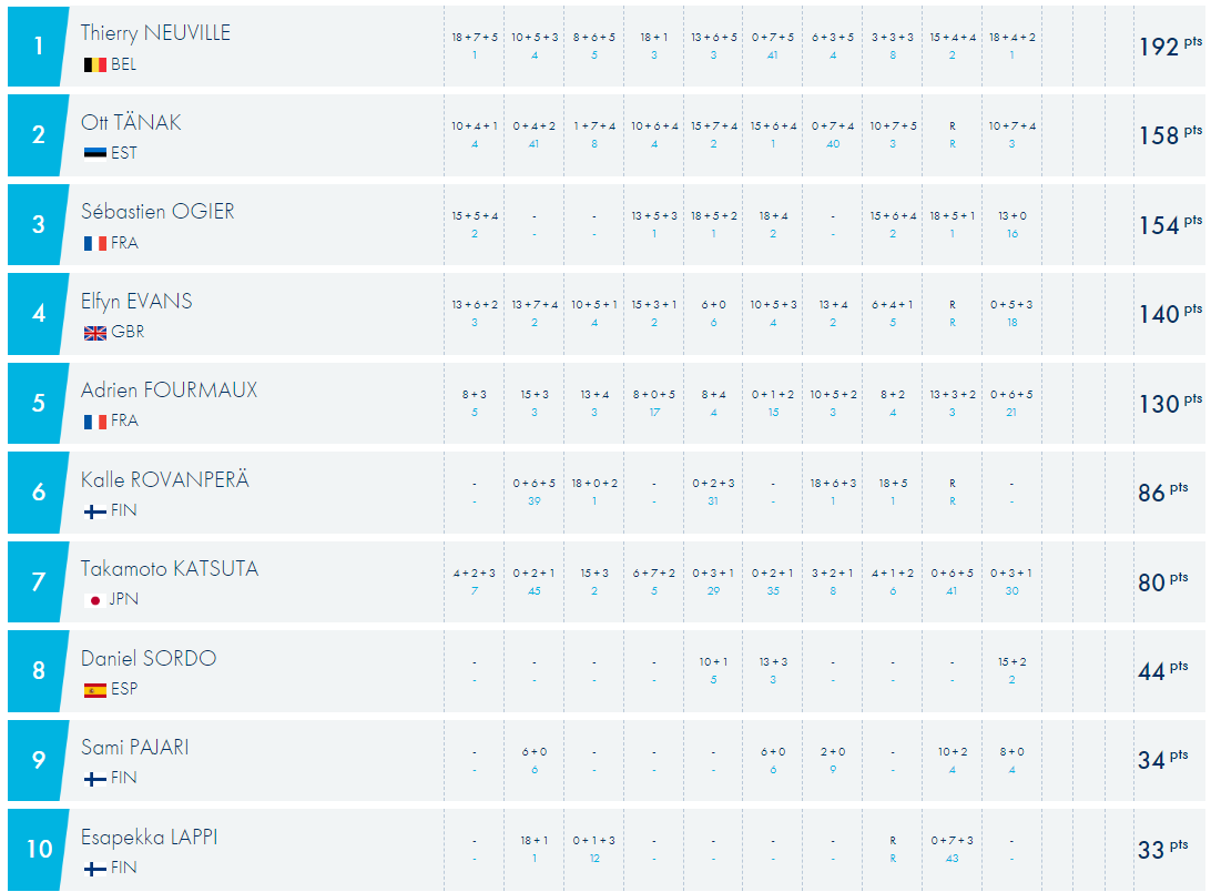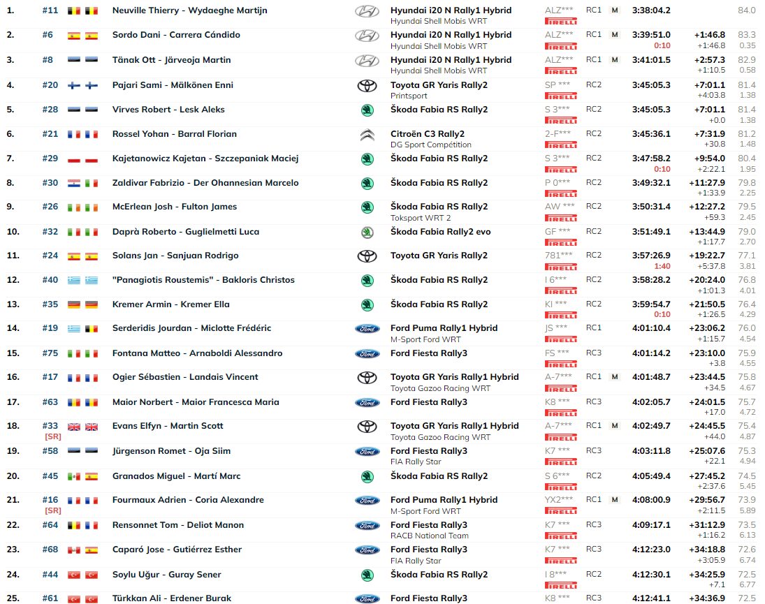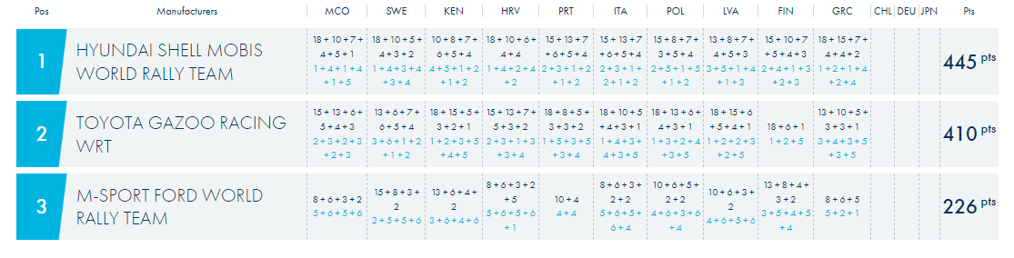 WRC, Rali da Grécia: Classificações / Resultados / campeonatos