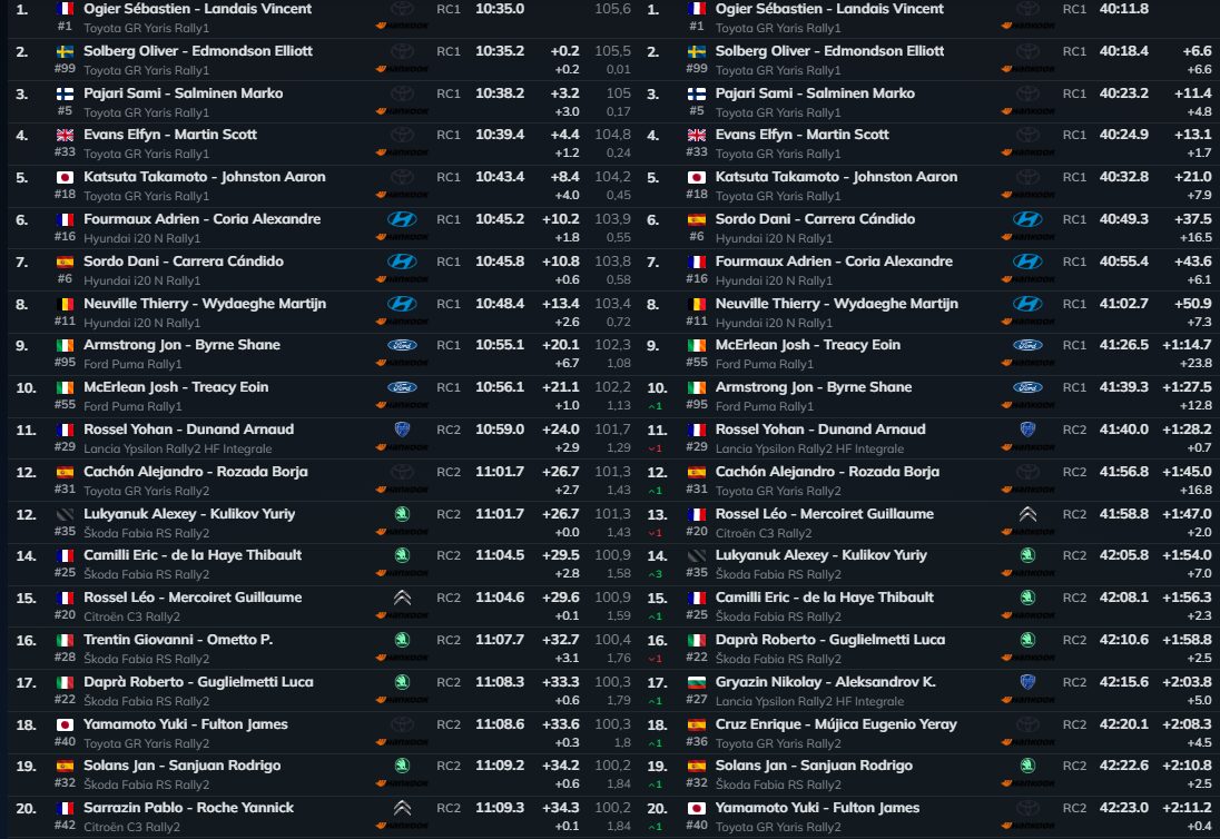 Sami Pajari (Toyota GR Yaris Rally1) parecia capaz de o desafiar nos primeiros setores, mas foi perdendo fôlego até ficar a três segundos. Adrien Fourmaux (Hyundai i20 N Rally1) salvou a honra da Hyundai sem realmente assustar ninguém, Thierry Neuville (Hyundai i20 N Rally1) atravessou o troço sem confiança, preso entre notas novas, curvas traiçoeiras e um carro que já não lhe inspirava fé. Jon Armstrong (Ford Puma Rally1) e Josh McErlean (Ford Puma Rally1) desceram a estrada em gestão, mais pacientes do que rápidos, enquanto Dani Sordo (Hyundai i20 N Rally1), a fechar o lote Rally1, voltou a ser o melhor Hyundai sem conseguir esconder a frustração: a equipa trabalha, mas a diferença persiste.