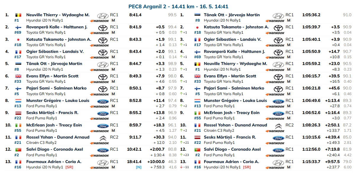 Kalle Rovanperä – Jonne Halttunen (Toyota GR Yaris Rally1) foram os segundos mais rápidos neste troço, seguidos de Takamoto Katsuta – Aaron Johnston (Toyota GR Yaris Rally1), que poderá ver o seu tempo retificado, pois foi um dos que foi afetado com a presença do carro de Fourmaux a meio do troço. Sébastien Ogier – Vincent Landais (Toyota GR Yaris Rally1) e Ott Tänak – Martin Järveoja (Hyundai I20 N Rally1) completaram o top 5.