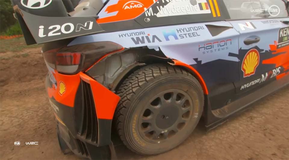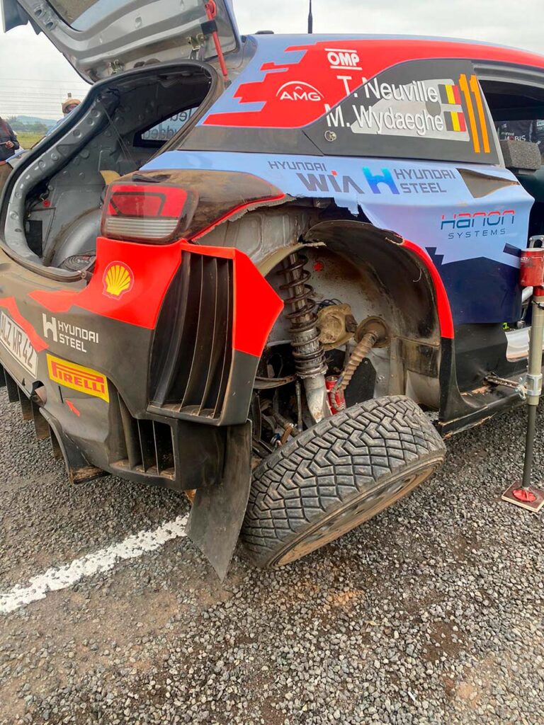 A Hyundai está mesmo a ter um ano terrível de falta de sorte. Num troço que parecia pouco complicado, Thierry Neuville danificou seriamente a suspensão traseira direita do seu Hyundai i20 WRC e terminou o primeiro troço do dia quase um minuto atrás de Sébastien Ogier. Mesmo que fosse possível atenuar o problema, sem assistência não havia a mínima hipótese do belga suster os ataques dos seus adversários e depois de ter ficado no fim da PE14 com apenas 11.7s de avanço para Takamoto Katsuta, com Sébastien Ogier 4.6s mais atrás depois de ter ganho 13.5s ao japonês, a Hyundai já confirmou o abandono de Neuville e Wydaeghe, com Takamoto Katsuta a ser o novo líder do Rali Safari.