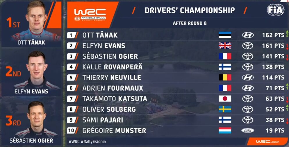 WRC: Tanak lidera campeonato, Hyundai recupera pontos à Toyota…
