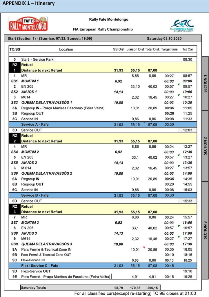 ERC, Rally Fafe Montelongo: Horário e Programa