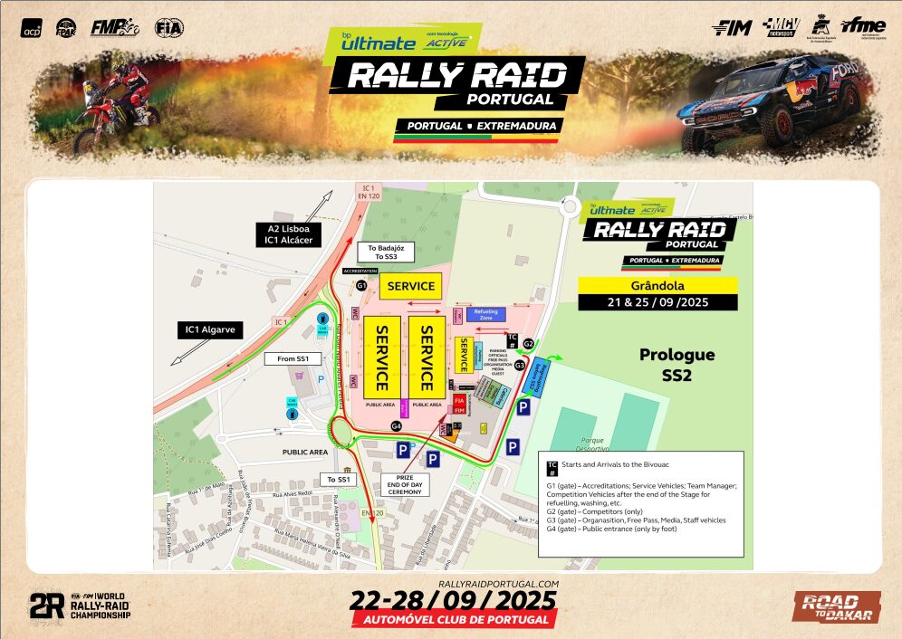 Em Grândola o público entra pelo portão principal da Feira, em horários a divulgar nas redes sociais da bp Ultimate Rally Raid Portugal.