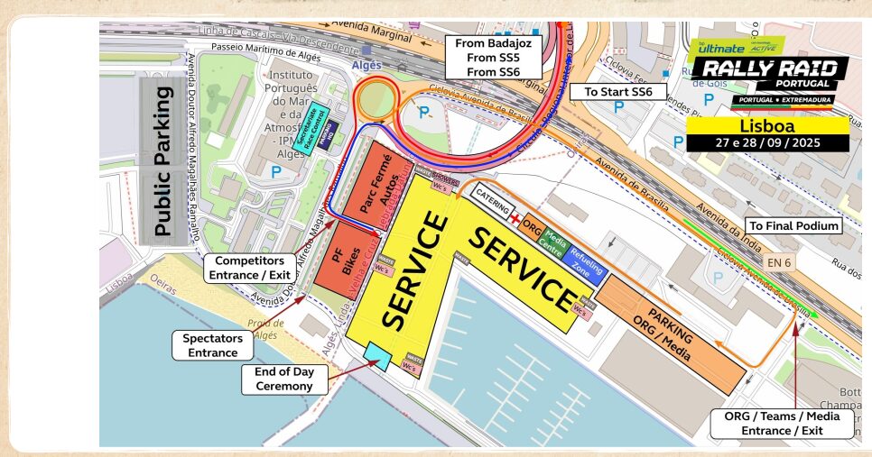 Após a quarta etapa, que cruza novamente a fronteira para Portugal, o bivouac instalar-se-á na Docapesca em Pedrouços, nas margens do estuário do Tejo. Esta localização simboliza a ligação histórica entre os dois países ibéricos através deste rio que nasce em Espanha e desagua no Atlântico junto à capital portuguesa. Em Lisboa o público entra na zona de assistência na entrada da ciclovia, junto à entrada do Restaurante Mexicano ‘La Siesta’, que fica junto à Praia de Algés, junto ao ICNF – Instituto da Conservação da Natureza e da Floresta, em horários a divulgar nas redes sociais da bp Ultimate Rally Raid Portugal. O estacionamento deverá ser no espaço do NOS Alive, sendo que esta informação carece ainda de confirmação e de anúncio nas redes sociais da prova como indicado anteriormente.