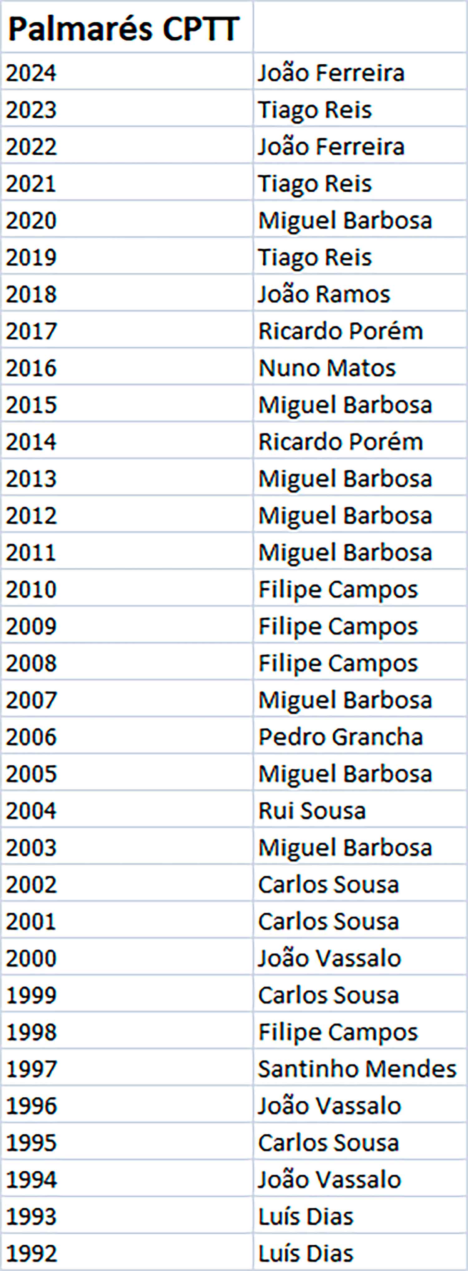 Nas duas décadas do CPTT, cinco campeões subiram ao pódio na primeira década, e seis nomes diferentes levaram o troféu na década mais recente. Luís Dias, por exemplo, foi o primeiro bicampeão consecutivo, enquanto João Vassalo conquistou o primeiro tricampeonato em 2000.