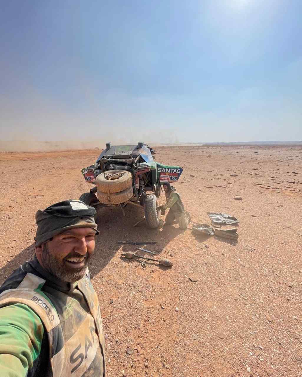 Etapa 1 (4 de janeiro): O carro sofreu uma avaria grave na caixa de velocidades e foi rebocado por mais de 100 quilómetros. Apesar do contratempo, a equipa manteve a confiança: “As histórias que ficam!”