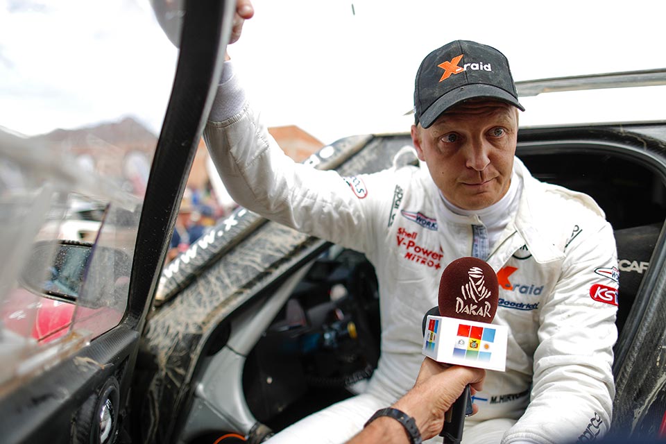 Mikko Hirvonen passou incólume a complicada quarta da prova, e já é terceiro classificado da geral. Depois de ter revelado que a MINI precisa de percursos mais técnicos para que as melhores qualidades do carro possam vir ao cimo, a verdade é que até aqui os percursos são bem mais adequados aos Peugeot: “Tivemos um bom dia, a primeira parte tinha enormes dunas a 4000 metros de altitude, e houve algumas que pensava não ser possível passar. Mas sempre encontrámos o caminho certo para sair delas, várias vezes mesmo no último momento. Foi aí que passámos o Carlos (Sainz) e o Stéphane (Peterhansel) e nesse aspeto o Michel (Périn) navegou em grande estilo. Pouco depois o terreno mudou e pudemos andar mais depressa. Mas aí os buggy passaram-nos novamente” disse Hirvonen que é agora terceiro da geral a pouco mais de cinco minutos do líder.