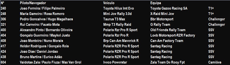 João Monteiro/Nuno Morais (BRP Can-Am Maverick R) da Can-Am Factory Team vão para a terceira edição consecutiva, foram 13º em 2024 e sétimos este ano (2025), curiosamente em ambas as situações, 55º da geral.