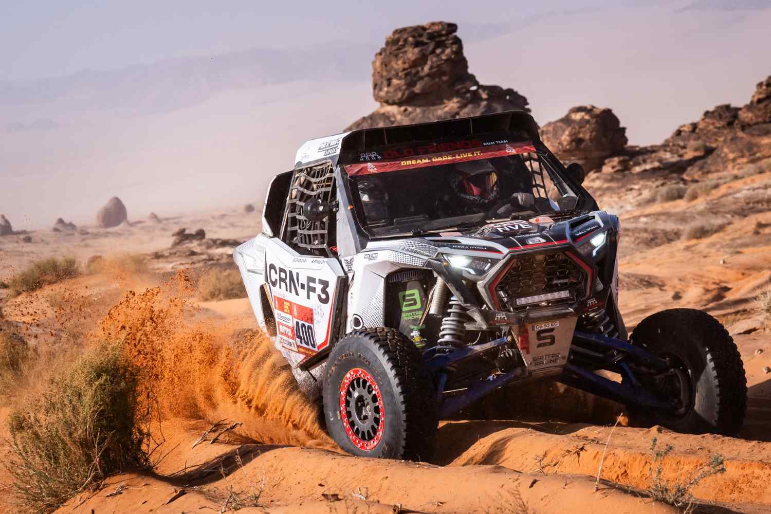 “Terminámos finalmente a etapa maratona. Ontem o dia correu-nos bem. Fomos conservadores, não tivemos problemas, não tivemos furos, terminámos o setor com uma boa classificação e subimos para terceiro da classificação SSV. Ficámos acampados, sem rede, sem telecomunicações e tratámos da nossa máquina. Hoje já não pudemos dizer o mesmo. Durante a etapa rebentou um amortecedor de trás. Não sabemos bem porquê, mas algo se passou.  Sorte a nossa de o Bruno e o Eurico terem parado e nos terem cedido um amortecedor do carro deles. Como já estão, de certa forma, fora de corrida, vieram eles sem um amortecedor no carro. A eles e à Santag Racing o nosso muito obrigada. Essa ajuda permitiu-nos terminar embora tenhamos perdido duas horas. Vai ser mais difícil para nós disputar os primeiros lugares, mas ainda temos muito Dakar pela frente. Vamos continuar a lutar e não vamos baixar os braços”, explicou o piloto do Old Friends Rally Team que disputa o Dakar Rally aos comandos de um Polaris.