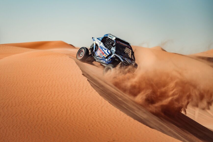 A especial cronometrada contou com 410 quilómetros, maioritariamente disputados em terrenos rochosos, terminando numa difícil travessia de dunas. Ao volante de um Polaris RZR PRO da Santag Racing, o piloto português, navegado por Gonçalo Reis, manteve um ritmo sólido ao longo de um dia física e tecnicamente exigente.
