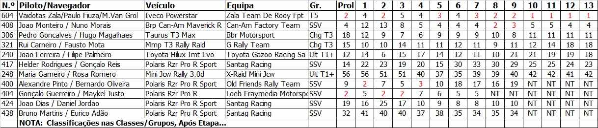 No final, um pódio – no melhor lugar – de Vaidotas Zala/Paulo Fiúza/M.Van Grol (Iveco Powerstar/Zala Team De Rooy), um quarto lugar de João Monteiro / Nuno Morais (BRP Can-Am Maverick R/Can-Am Factory Team) foram os saldo mais positivos da caravana em termos de resultados.