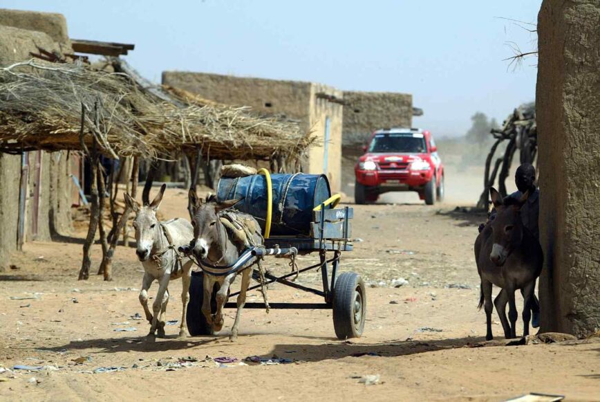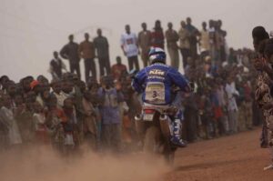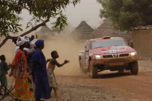 A imagem icónica do Dakar africano não era apenas a de um carro a saltar dunas, mas a de protótipos de centenas de milhar de euros a rasgar aldeias no Mali, Níger, Senegal ou Mauritânia, cobertos de publicidade, enquanto crianças descalças e sem acesso a eletricidade ou água potável observavam na berma.