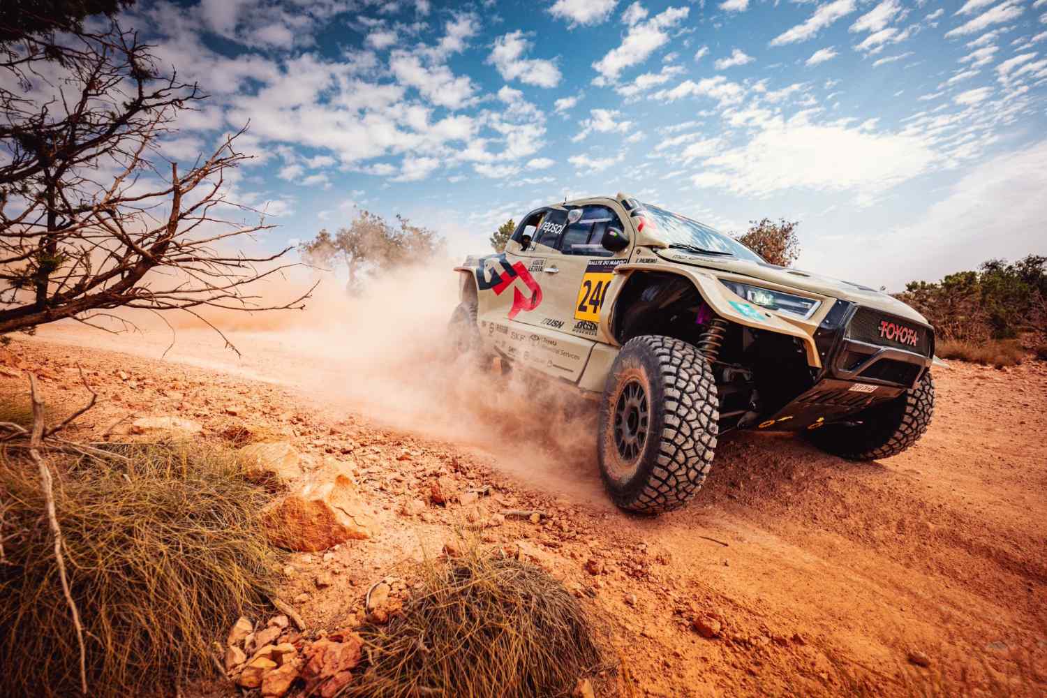 JF:“Sim, o fator dos furos dita muito o andamento porque, se ficarmos sem pneus sobressalentes a meio da etapa, não conseguimos ir a lado nenhum. É importante tentar adotar uma estratégia, um andamento seguro a andar depressa, cauteloso. É de facto um tipo de piso muito traiçoeiro, mas vamos ver. Também nunca andei em zonas de muita pedra com a Toyota. De facto, o Mini o ano passado, etapas de furos dificultaram-nos um bocado a vida, mas estou confiante que sendo um piloto mais maduro, acho que vamos, espero eu, ter menos problemas com os furos este ano.”