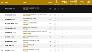 A Dacia saiu de Loulé com três vitórias em etapas, enquanto João Ferreira somou dois triunfos para a Toyota, mas seria Seth Quintero a garantir o segundo lugar final, a 2m46s de Loeb. O piloto norte-americano bateu o português João Ferreira, terceiro a 3m37s, que conseguiu ainda manter Lucas Moraes em quarto, a 4m36s, numa classificação geral muito compacta no topo.