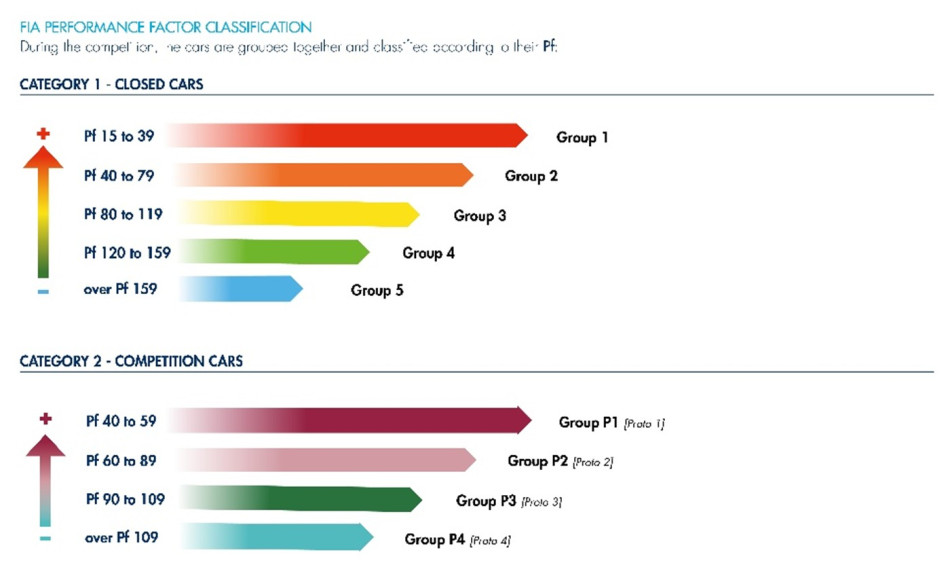 Lançado em 2019 e implementado nas competições da FIA a partir de 2021, o sistema Pf calcula o desempenho de um carro usando uma fórmula centrada na sua relação potência/peso, ao mesmo tempo que considera fatores como o layout da transmissão, a aerodinâmica e a rigidez do chassis. Ao mostrar o desempenho num único valor numérico, o Pf permite que veículos com potencial semelhante sejam agrupados, trazendo ordem a grelhas anteriormente superlotadas com dezenas de classes desequilibradas.