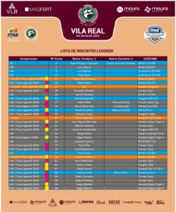 Com mais de três dezenas de carros inscritos para a prova vila-realense, no Campeonato de Portugal de Velocidade Super Legends, os pilotos estarão distribuídos pelas categorias Super Extra, Super Turismo e Super Trophy, pilotando máquinas como o Ford Puma, Lotus Elise e os muitos Honda Type R da TypeR Legacy Cup. Em termos de classificação absoluta, é Francisco Gonçalves (Lotus Elise) quem lidera, assim como entre os concorrentes da Super Extra. Gonçalves é secundado por Eduardo Machado (Honda Type R) da categoria Super Turismo – mas é Nuno Figueiredo, com um Honda Civic Type R, que ainda terá Pedro Cerqueira também aos comandos, que lidera esta categoria – e por Eleutério Duarte (que divide um Renault Clio RS com Telmo Nunes) da categoria Super Trophy.