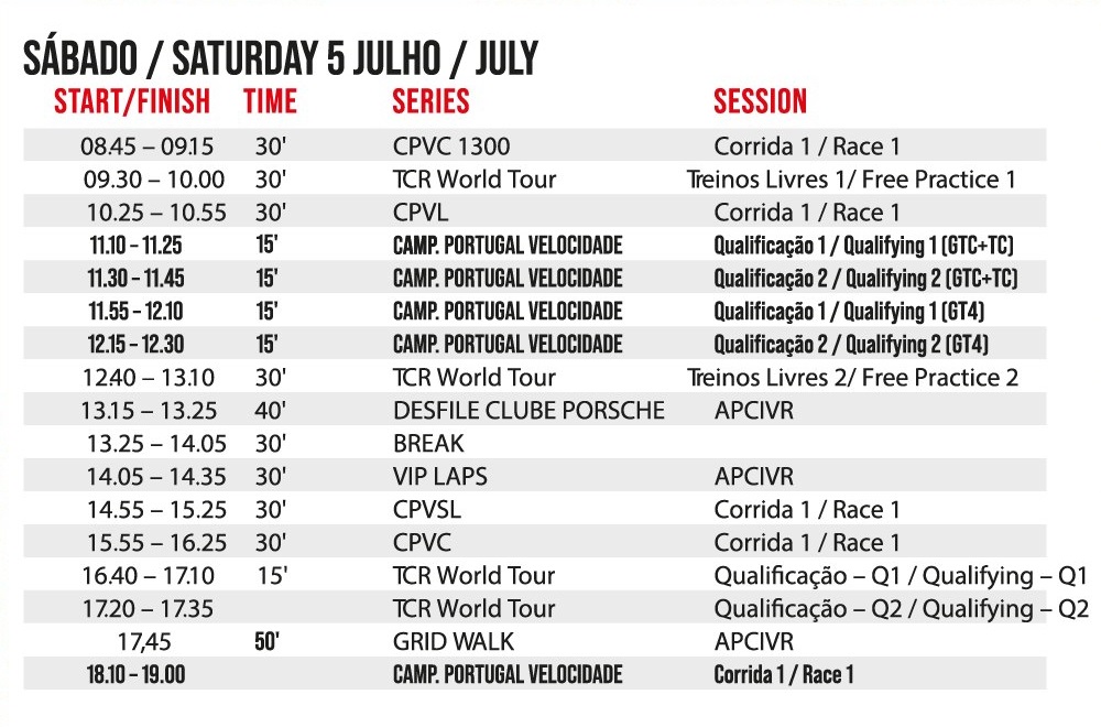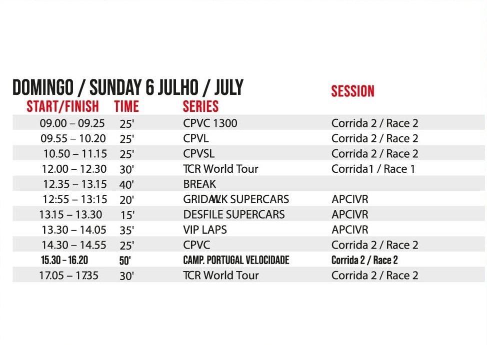 Circuito de Vila Real: Os horários