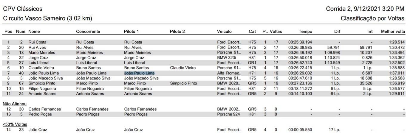 Rui Costa foi o vencedor da segunda corrida do fim de semana do CPV Clássicos. O piloto do Ford Escort RS 1600 levou a melhor sobre a concorrência e conseguiu nova presença no pódio.