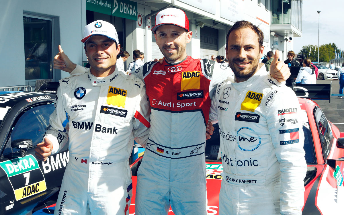 O piloto da Audi Sport Team Rosberg, René Rast, venceu a primeira corrida do fim de semana do DTM, mantendo atrás de si o piloto da BMW Team RBM, Bruno Spengler, que pressionou o seu adversário na fase final da corrida, mas este nunca lhe permitiu grandes veleidades, sendo que a margem final de 0.8s é um pouco enganadora, pois o homem do BMW passou últimas voltas a cerca de 1.2s de não conseguiu chegar-se ao ponto de poder usar o DRS. Gary Paffett, piloto da Mercedes-AMG foi terceiro e regressou ao comando do campeonato.
