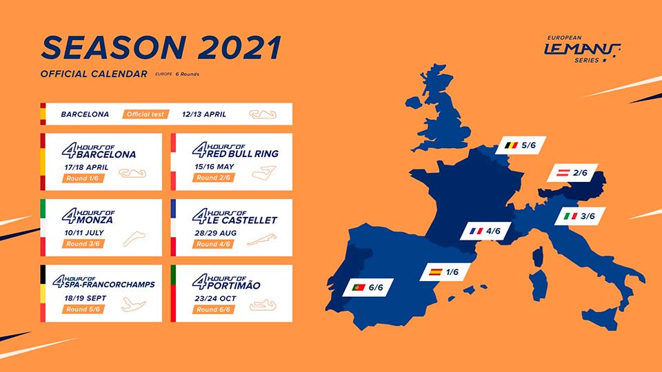 O calendário da European Le Mans Series 2021 foi revelado e Portugal continua a ser a prova de encerramento da competição. A única novidade passa pelo regresso do Red Bull Ring após um hiato de dois anos, sendo que o circuito austríaco acolherá a segunda prova da temporada 2021 nos dias 15 e 16 de maio. O Red Bull Ring vai substituir Silverstone, coincidindo esta ausência da pista britânica com a do calendário do Mundial de Endurance de 2021. Portanto, em 2021, Barcelona, Monza, Le Castellet, Spa-Francorchamps, Red Bull Ring e Portimão compõem o calendário.