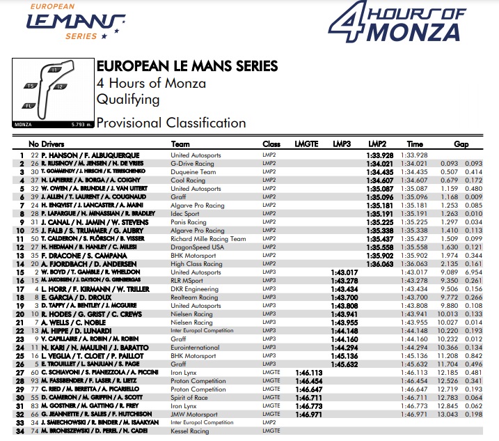 É a sexta ‘pole position’ consecutiva que Filipe Albuquerque conquista, a quarta no European Le Mans Series. O piloto português, que faz dupla com Phil Hanson no Oreca 07 – Gibson #22 da United Autosports, consegue assim mais um ponto para as contas do Campeonato, tendo agora 30 pontos de vantagem para o segundo classificado, quando faltam somente disputar duas corridas para o final da temporada.