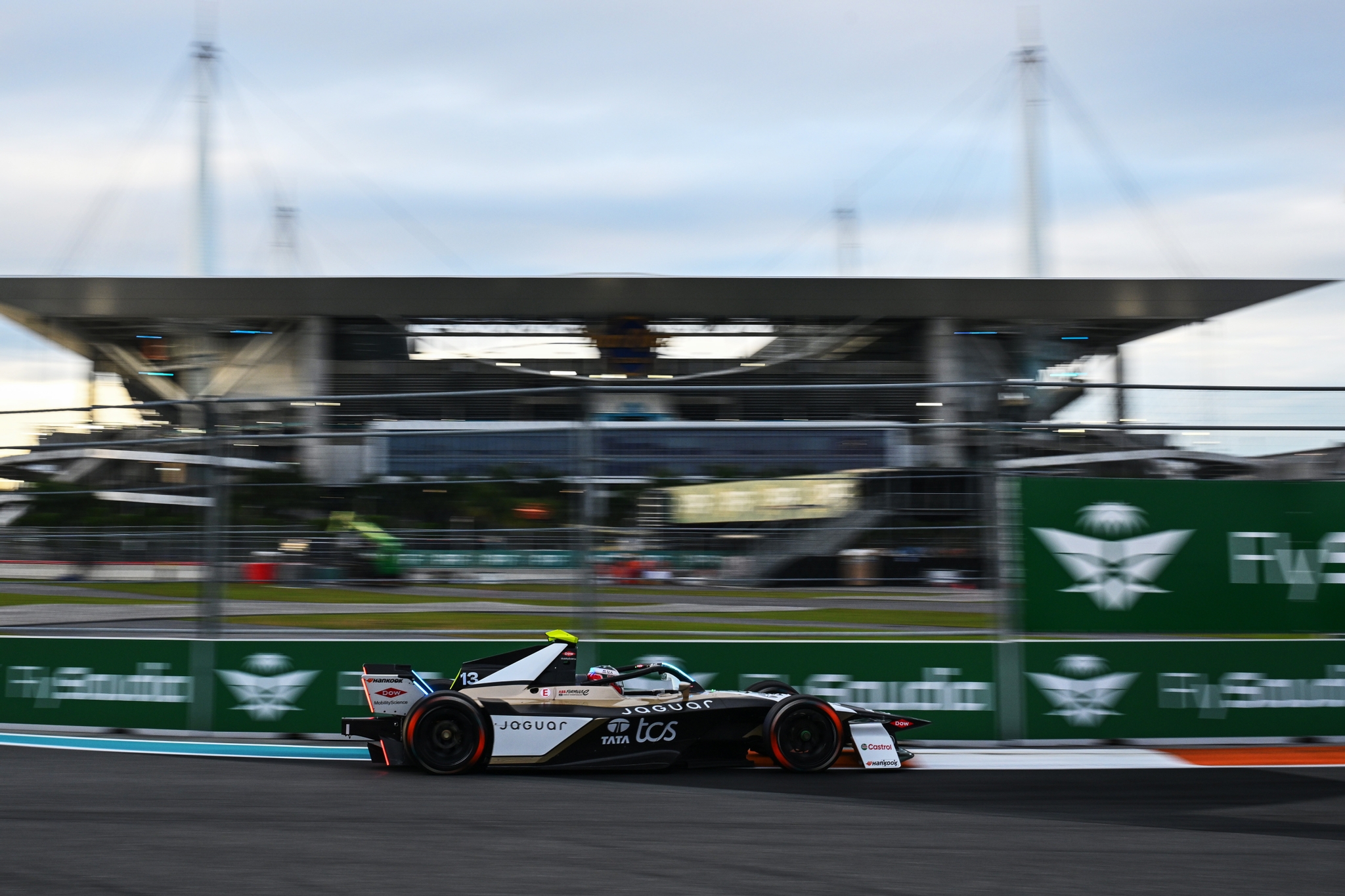 MIAMI, FLORIDA – JANUARY 30: Antonio Felix da Costa of Portugal driving the (13) Jaguar TCS Racing Jaguar I-TYPE 7 on track during Practice, ahead of the Miami E-Prix, Round 3 of the 2026 FIA Formula E World Championship at Miami International Autodrome on January 30, 2026 in Miami, Florida. (Photo by Mark Sutton/LAT Images)