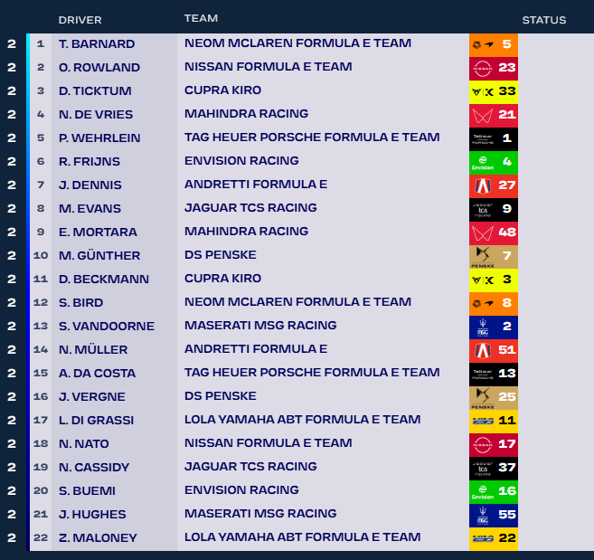 Rowland, Dennis, De Vries and Wehrlein progress to the Duels. #MonacoEPrix pic.twitter.com/qr4bWoID5o