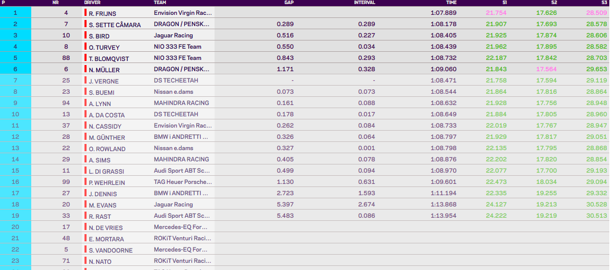 Frijns foi ao AM, passando para segundo com Bird a assumir a liderança, na mesma altura que Félix da Costa também ia ao AM e caía para oitavo.