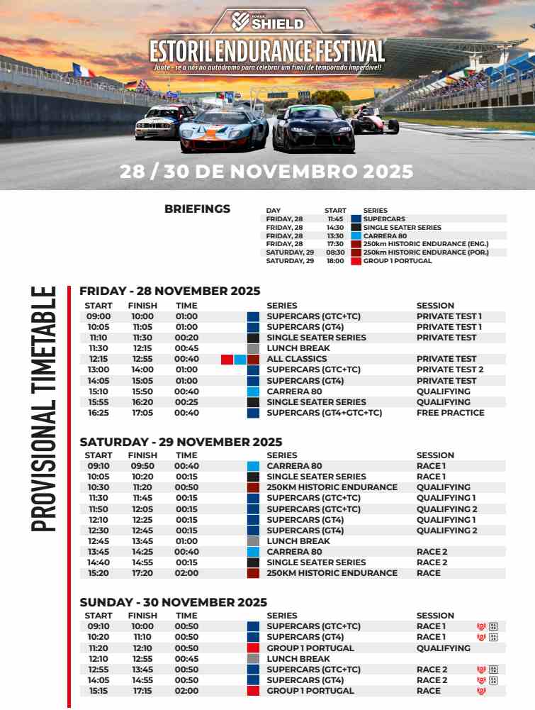 A 13ª edição dos 250 km do Estoril by Powershield encerra, como é tradição, uma temporada de ouro do Iberian Historic Endurance, trazendo ao Autódromo do Estoril uma grelha rica em história, prestígio e diversidade. Este ano, são 47 carros clássicos de competição – entre GT, protótipos e turismos – conduzidos por pilotos de várias gerações e nacionalidades, num fim-de-semana marcado tanto pela camaradagem como pela intensa luta em pista no Estoril Endurance Festival.