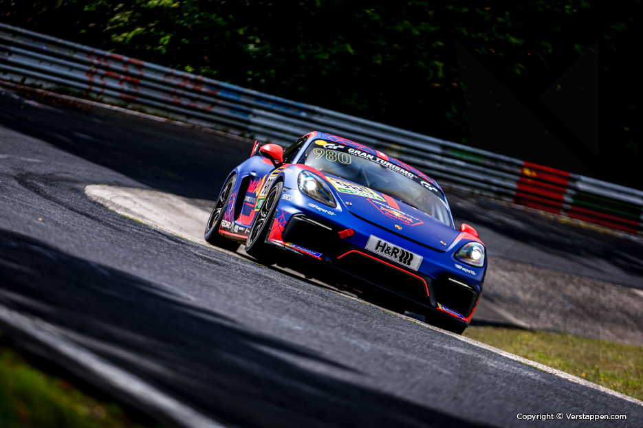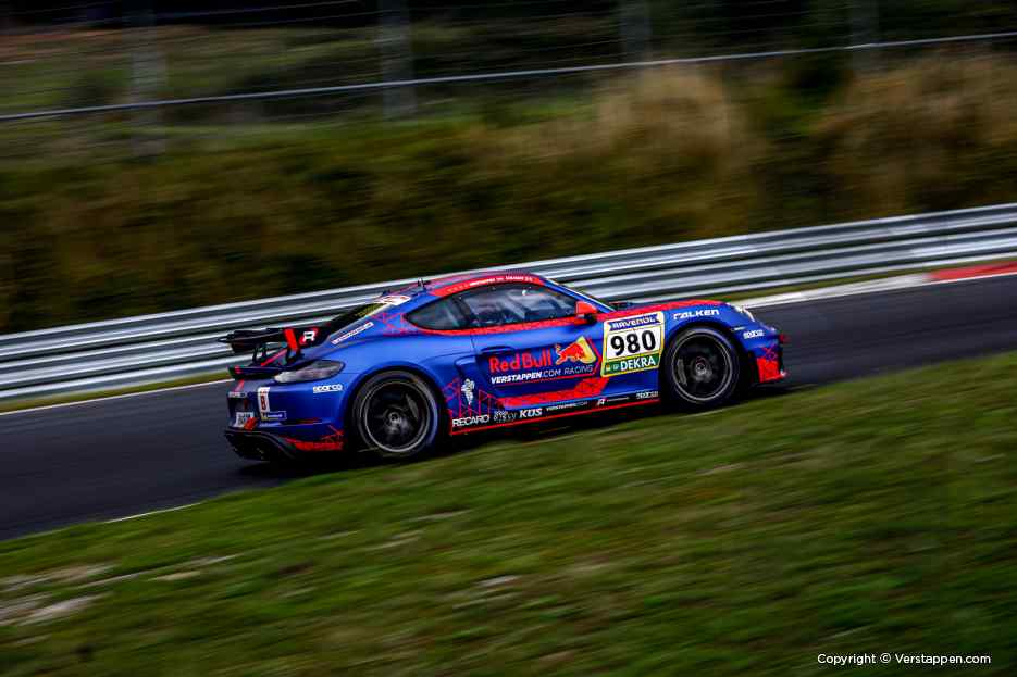Para obter a licença de corrida especial para o Nordschleife, Max Verstappen participou com um Porsche 718 Cayman GT4 CS, exibindo a conhecida decoração Verstappen.com Racing x Red Bull. Max participou numa qualificação molhada no sábado de manhã, registando um tempo de 10:21.591, após o qual a estrela da F1 estava agendada para participar numa corrida de 4 horas à tarde, ao lado de Chris Lulham. Este último é um jovem inglês de 22 anos que compete pela Verstappen.com Racing na GT World Challenge Europe Endurance e Sprint Cup.