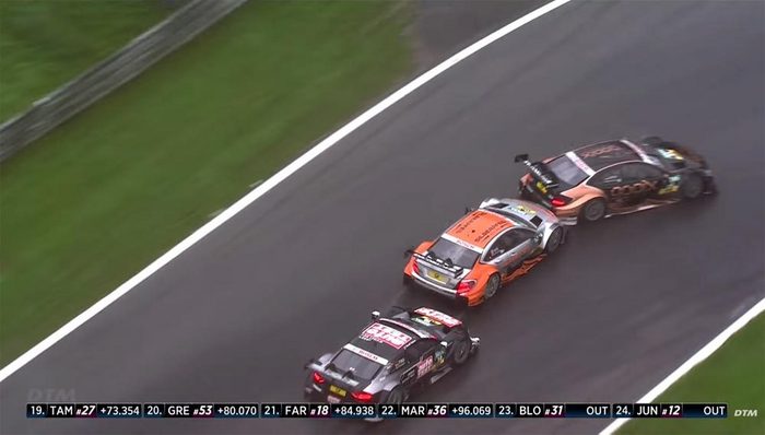 Recorde-se que Pascal Wehrlein, Robert Wickens, ambos da Mercedes e Timo Scheider, da Audi, envolveram-se em dois incidentes separados, com o segundo a ter a ver, diretamente com o primeiro, já que inicialmente Robert Wickens, piloto da Mercedes, que estava em luta com Timo Scheider manobrou de forma a permitir a passagem de Pascal Werhlein pelo seu carro, impedindo o homem da Audi de reagir. Wehrlein meteu por dentro, Wickens susteve Scheider, com o pilot da audi a não conseguir manobrar porque ao seu lado já estava Wehrlein que passou facilmente pelos dois. Em condições normais, ninguém ultrapassa dois concorrente duma vez naquele ponto.