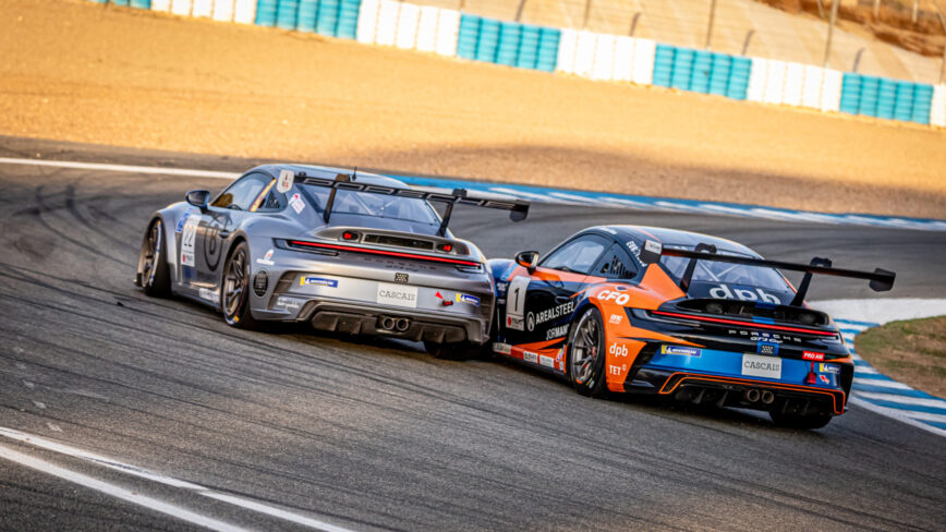 A corrida de resistência que encerrou a penúltima ronda da Porsche Sprint Challenge Ibérica 2025, disputada este domingo no Circuito de Jerez – Ángel Nieto, ofereceu um espetáculo de grande intensidade e emoção. Com 50 minutos de duração, a prova foi marcada por duas fases distintas: um domínio inicial de Manuel Alves (LOB Motorsport) e uma recuperação notável de Borja García e Alejandro Barambio (GT Corse), que acabariam por conquistar a vitória após uma luta intensa pela liderança.