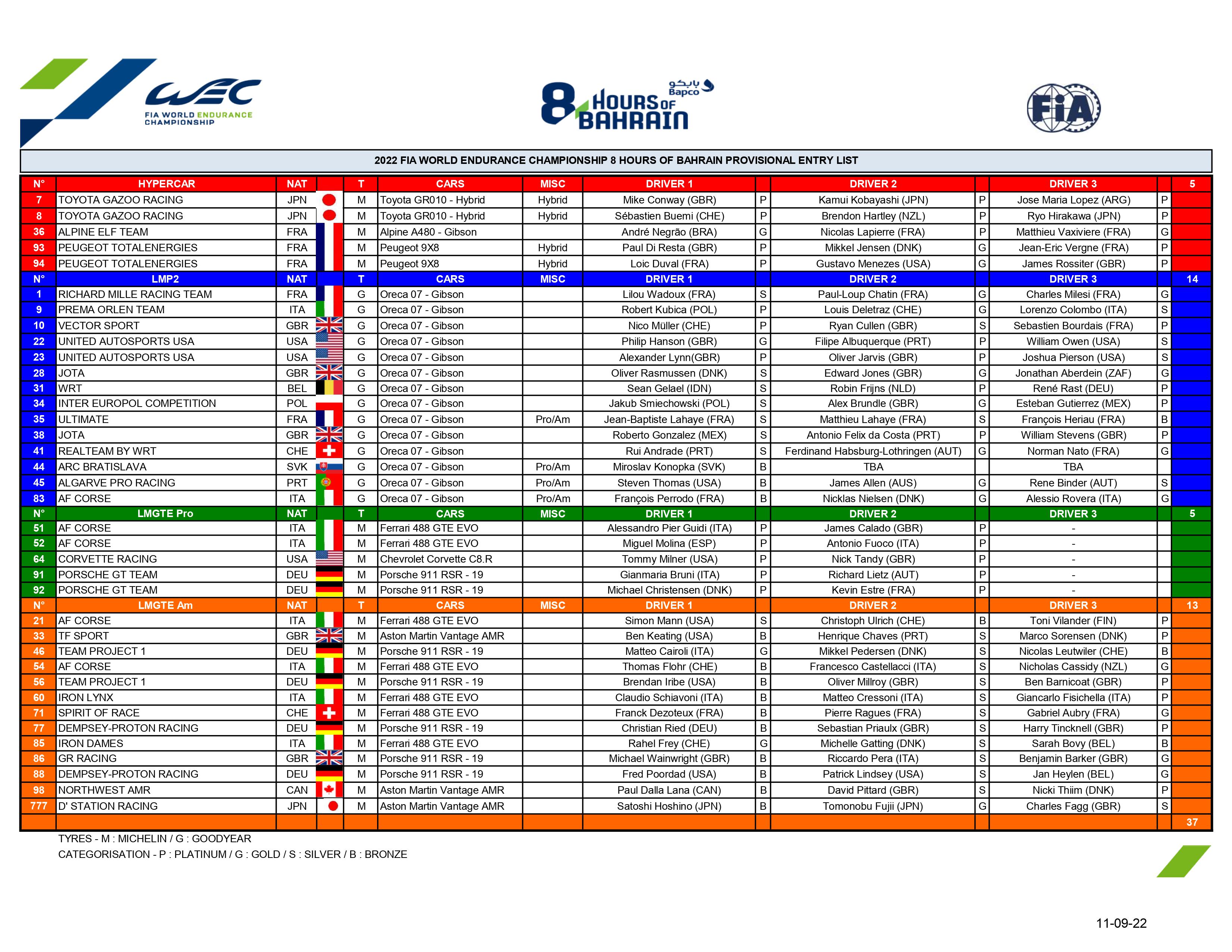 Assim, serão cinco protótipos inscritos na categoria Hypercar no Bahrein, com Toyota, Alpine e Peugeot, confirmando-se que a Porsche não estará presente para levar o seu novo 963 LMDh.