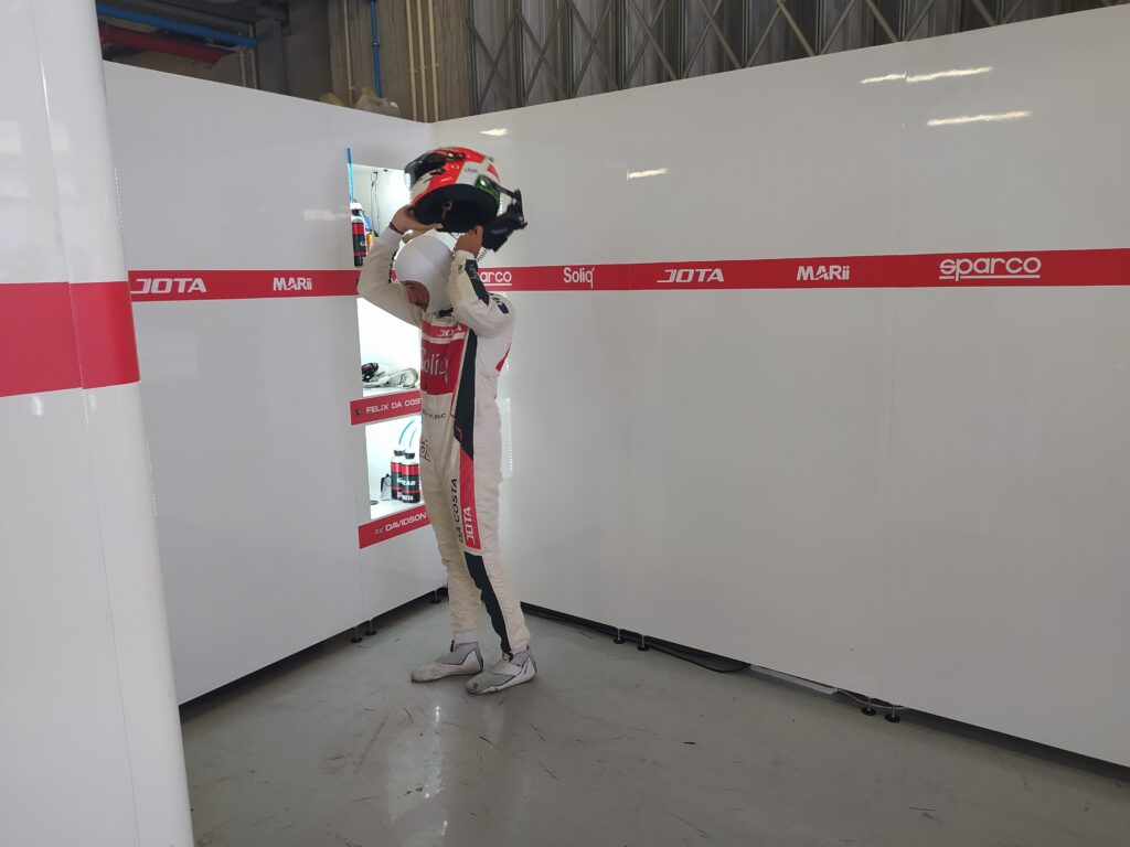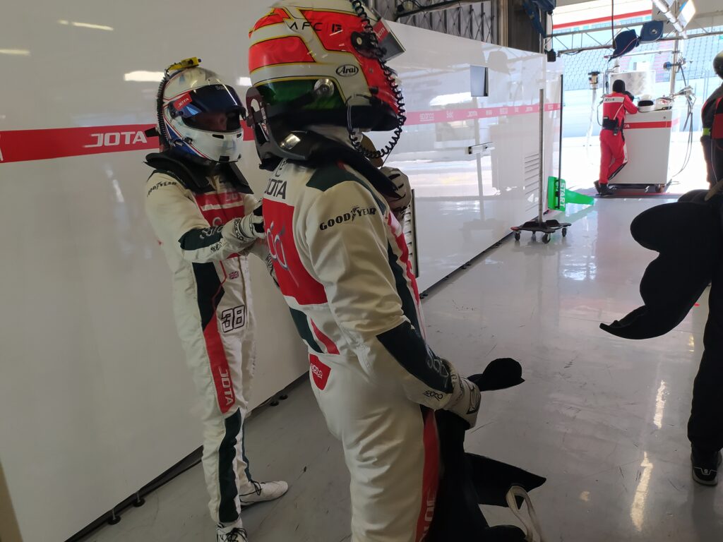 O facto de ver pilotos dos dois carros partilharem informação causou-nos alguma estranheza mas Duarte Félix da Costa, que passou a ser o nosso cicerone quando António entrou no carro, explicou que a JOTA era a única equipa com dois carros em pista e que o português fez força para que ambos os lados da box trabalhassem em conjunto para encontrar o melhor compromisso de afinação do carro, aproveitando esta vantagem. Até à qualificação de sábado, tudo funcionaria em prol de encontrar a melhor afinação e a partir da qualificação, seria cada um por si.